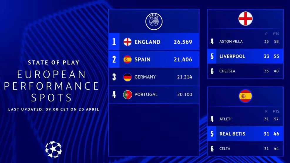所以,每个赛季开始前,大多数联赛的欧战资格分配就已经锁定,不会在赛季中发生变化。