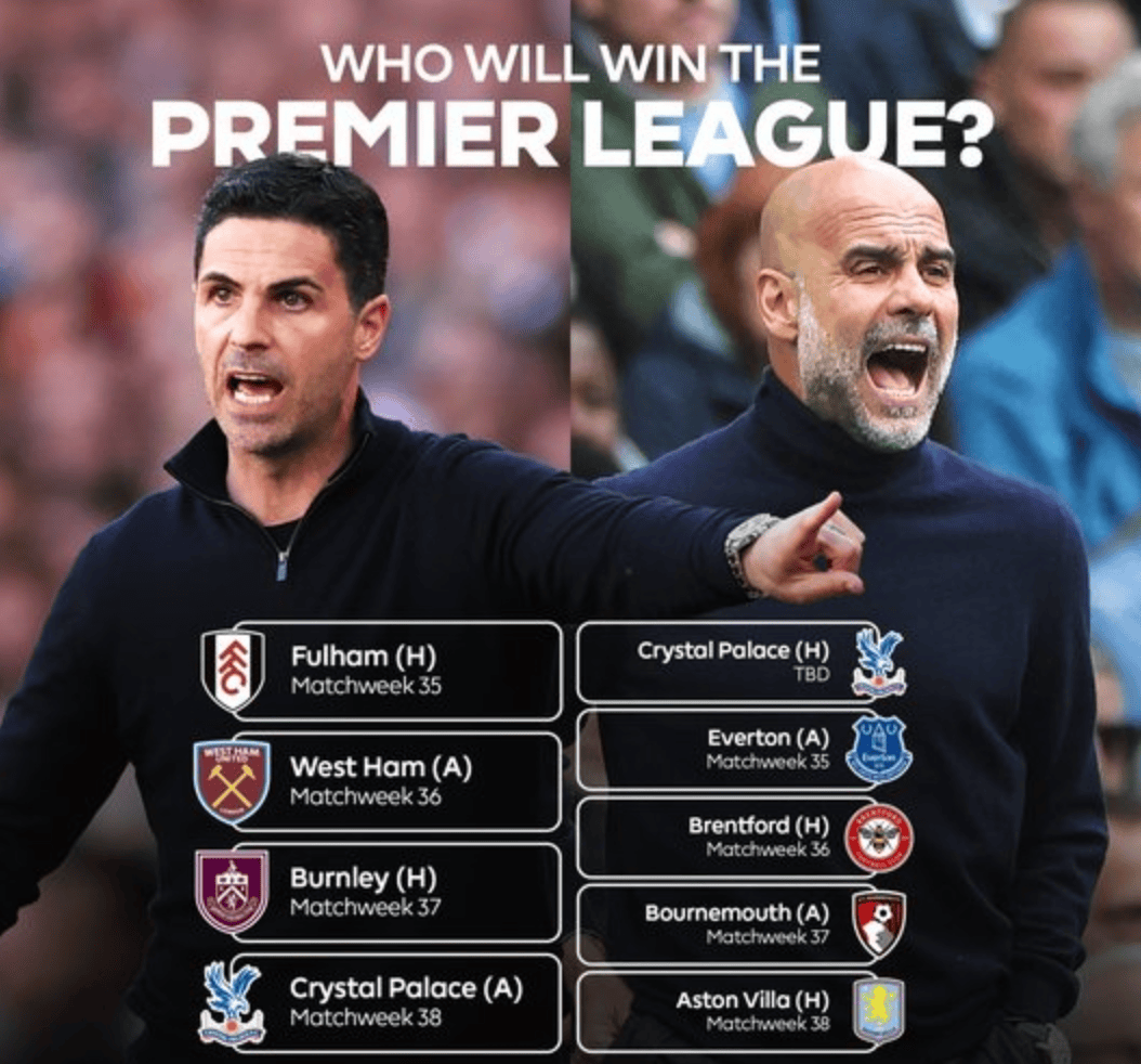 阿森纳接下来的4个对手大多都是英超排名相对靠后的球队,曼城的5个对手则是排名中游的球队,这对阿尔特塔来说是一个还算不错的消息。毕竟曼城的5个对手当中,包括伯恩茅斯、布伦特福德、埃弗顿等还有机会竞争欧冠名额的球队。而阿森纳的4个对手当中,伯恩利已经确认降级、水晶宫无欲无求、富勒姆也没有太大的压力,唯有西汉姆联还有保级的任务,相对来说要容易一点。
